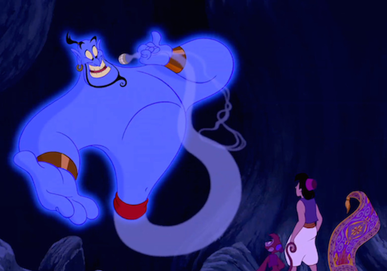 Williams and Disney had a falling out after promotional materials for Aladdin ran afoul, the actor believed, of the deal he had struck to voice the Genie. (Williams had worked for scale — just $75,000 — provided that his name/image was not used for marketing/promotions and that the Genie did not dominate posters.)