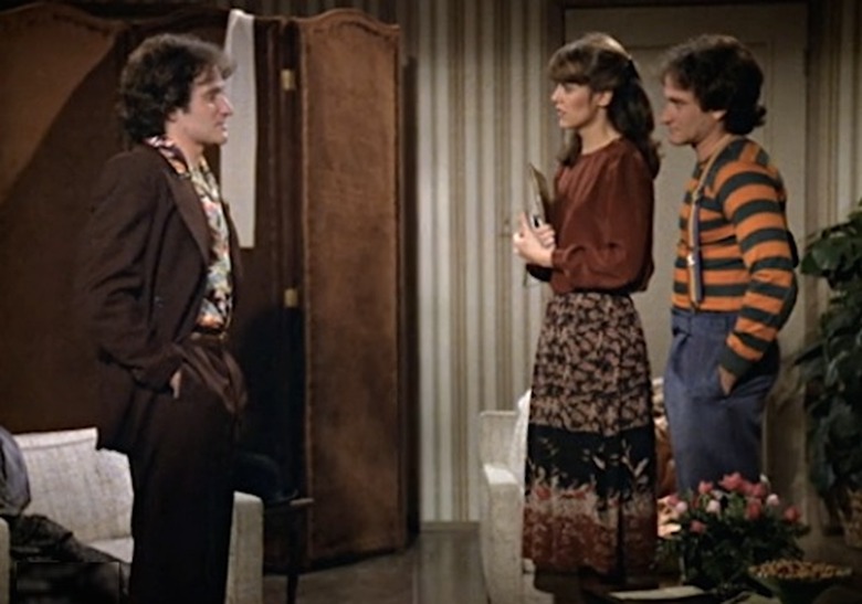 It was Mork & Mindy and meta when in a Season 3 episode, Mork met his troubled-by-fame stand-up comic doppelgänger, Robin Williams. (Watch episode here.)