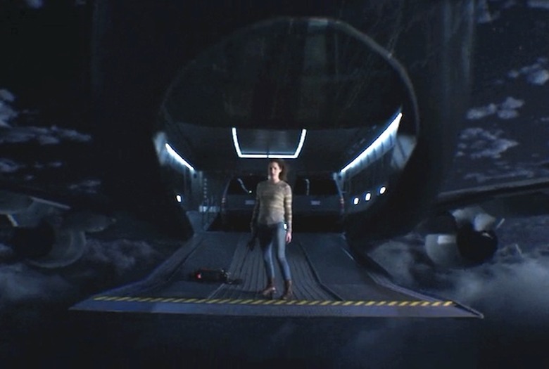 Jamie standing on the airborne jet's open cargo ramp, Zoo