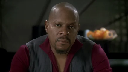 Since Cardassians booby trap places before leaving them, they take along DS9's resident Cardassian tailor/spy, Garak (Andrew Robinson), with them, and while fighting the Cardassian soldiers frozen until the ship was boarded, he becomes affected by a psychotropic drug being pumped through the air that makes Cardassians even more bloodthirsty and xenophobic. He kills the other Cardassians and then turns on his own crew, and he's only stopped when Miles tricks him (and nearly kills him as a result).
