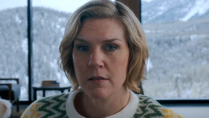 Near the end of the "Pluribus" finale, Carol and Zosia are enjoying a romantic getaway at a snowy ski cabin when Carol idly wonders if there's another way that they can access her stem cells without her consent. Then we cut to a shot of Carol facing the camera as she tries to puzzle this out. (In the video clip above, the shot begins at the 4-second mark.)