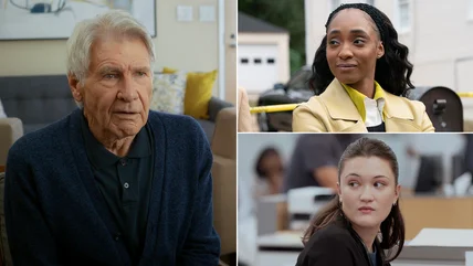 Liz (Christa Miller) and Paul (Harrison Ford) share a sweet back-and-forth after she finally gives him the perfect rock