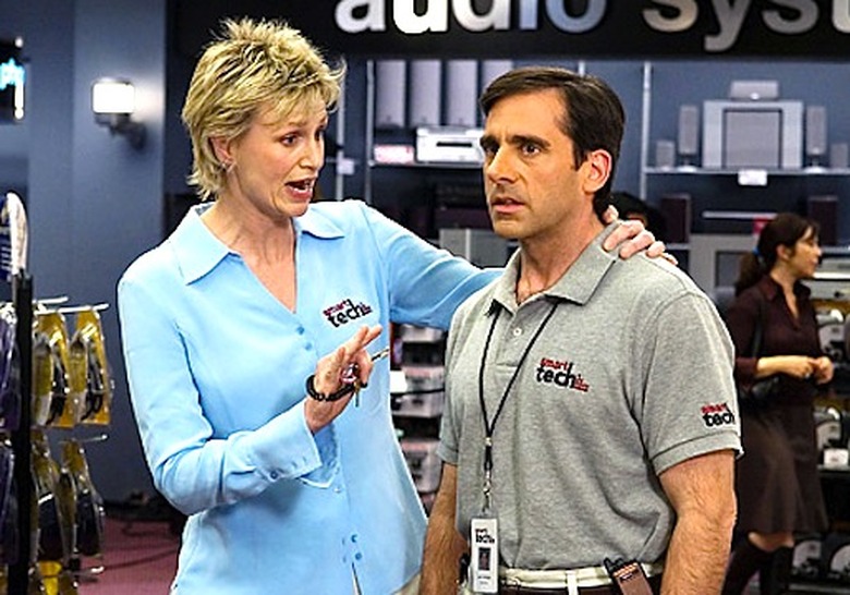 1 | You may or may not have heard this, but Steve Carell recently left his post on NBC's The Office. Well, we think it would be pretty darn hilarious if the ceremony opened with a now-unemployed Carell approaching his 40-Year-Old Virgin co-star Lynch (reprising her role as electronics seductress Paula) in an attempt to reclaim his job at SmartTech.