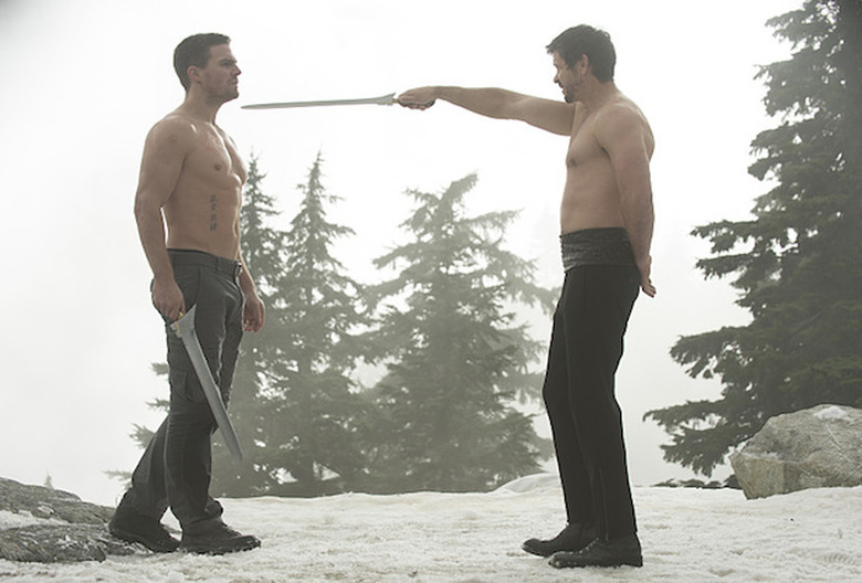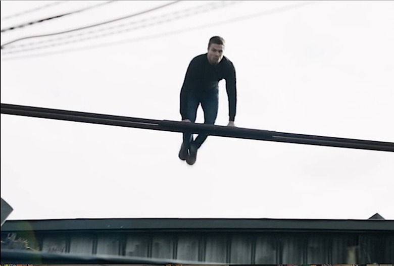 Landing on a snowy mountaintop for Oliver's duel to the death (or "death") versus Ra's al Ghul "was definitely planned," Guggenheim affirms. "We actually traveled 'outside the zone,' beyond a certain radius [established] to not impose ridiculous travel on everybody. But we went up even further north than we were to try to catch some snow," filming on North Vancouver's Grouse Mountain.