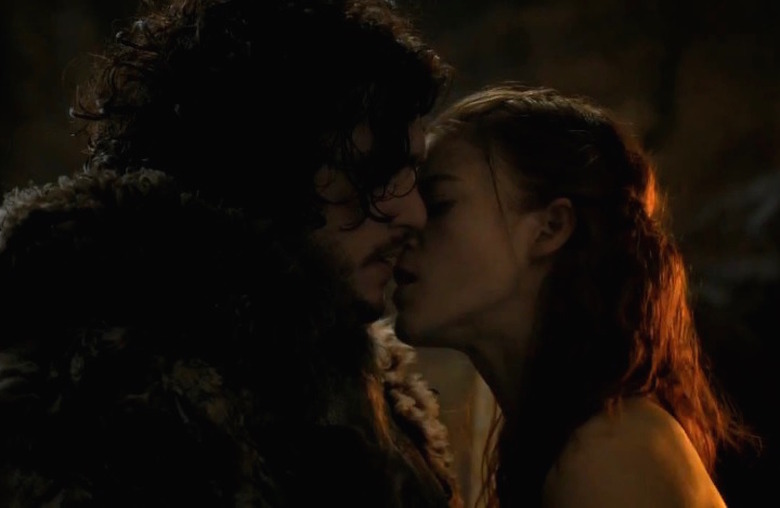 Jon Snow shows Ygritte he knows something. (Insert your own "exploring the cave" joke here.)