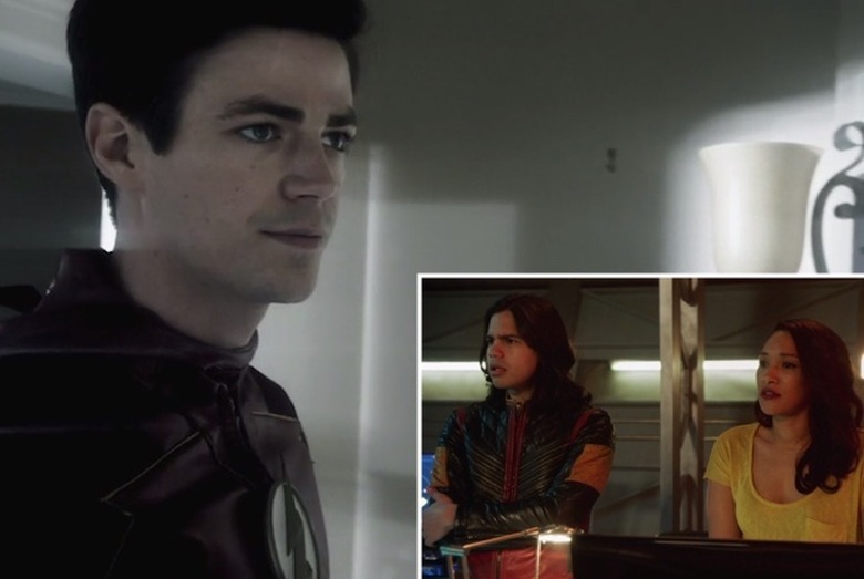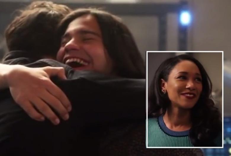 Iris (Candice Patton) is just a bit off Trek in appreciating the "reunion" between Harry (Tom Cavanagh) and Cisco (Carlos Valdes)