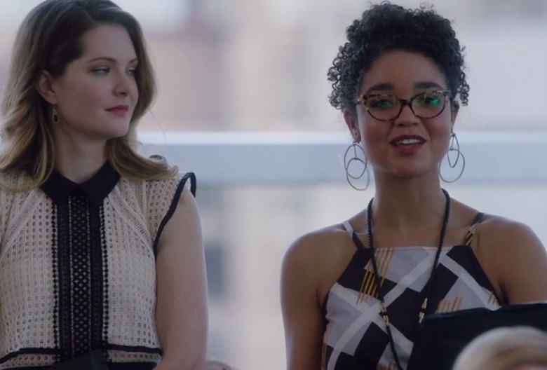Kat (Aisha Dee) weighs in during an editorial meeting