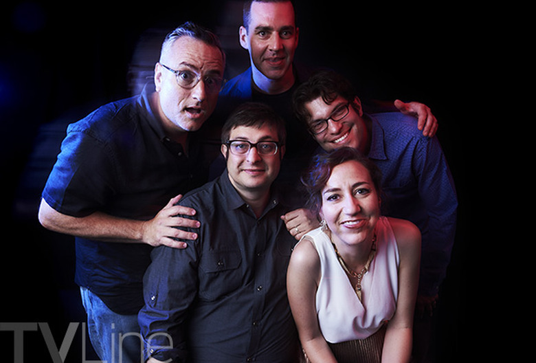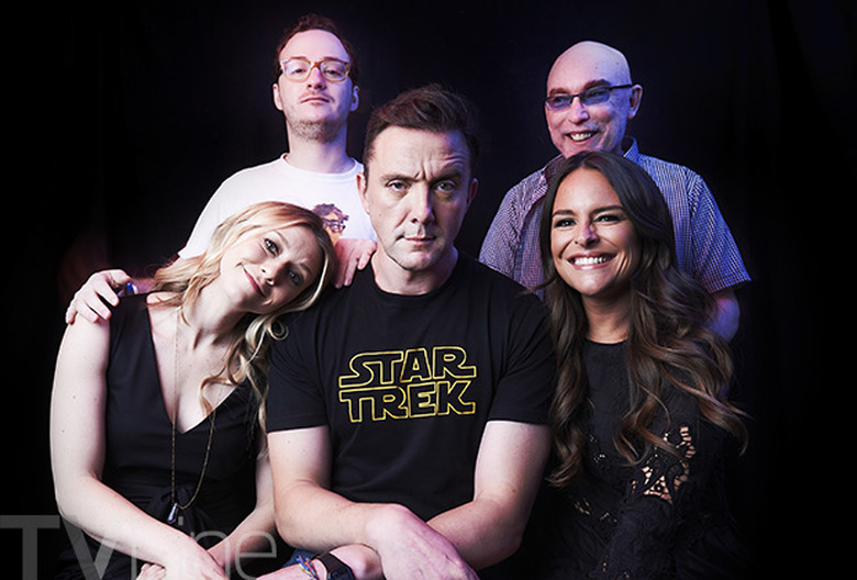 Timeless cast with EPs Shawn Ryan and Eric Kripke