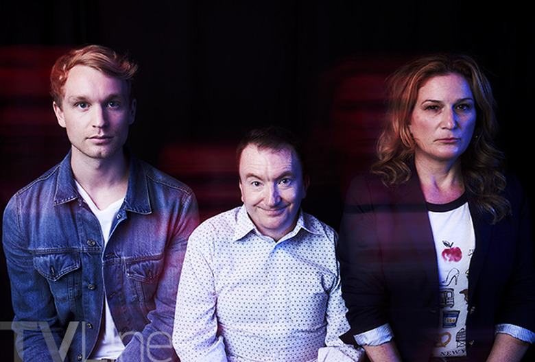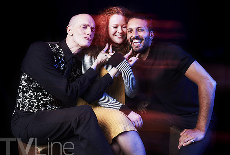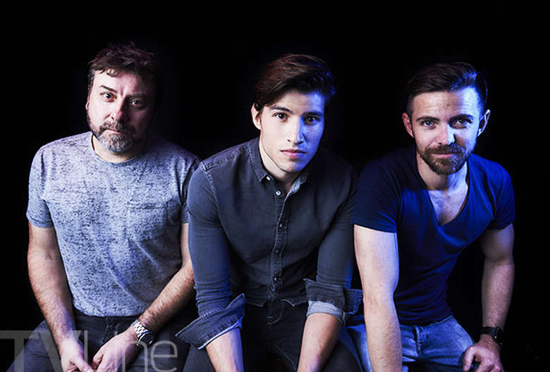 Krypton's Cameron Cuffe (center) with EPs Damian Kindler and Cameron Welsh