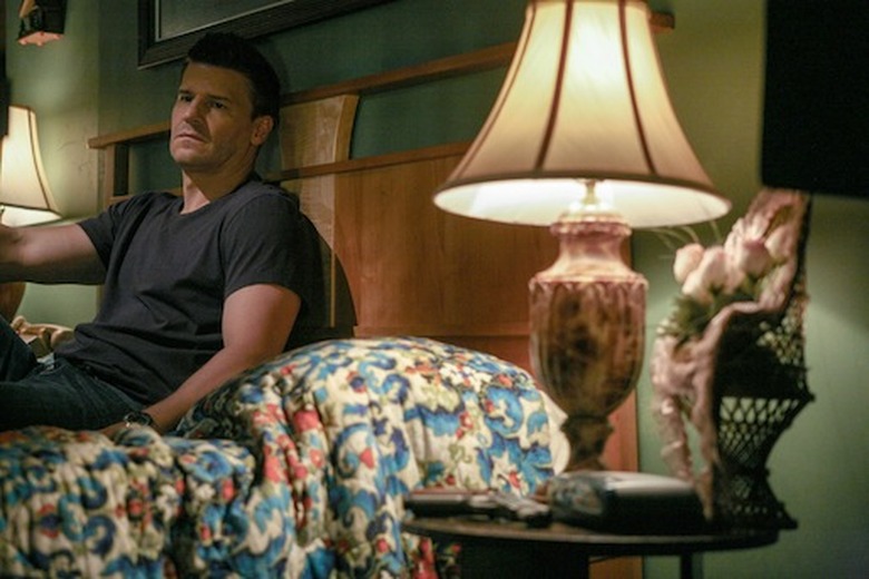 BONES: Booth (David Boreanaz, R) meets up with Brennan (Emily Deschanel, L) while she is still on the run in the Season Eight premiere episode of BONES airing Monday, Sept. 17 (8:00-9:00 PM ET/PT) on FOX. ©2012 Fox Broadcasting Co. Cr: Beth Dubber/FOX