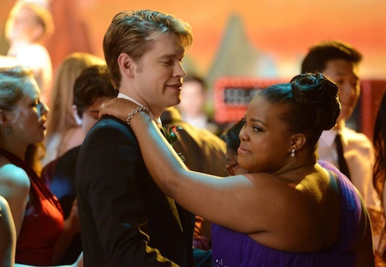 GLEE: Sam (Chord Overstreet, L) and Mercedes (Amber Riley, R) share a dance in the "Prom-asaurus" episode of GLEE airing Tuesday, May 8 (8:00-9:00 PM ET/PT) on FOX. ©2012 Fox Broadcasting Co. Cr: Mike Yarish/FOX
