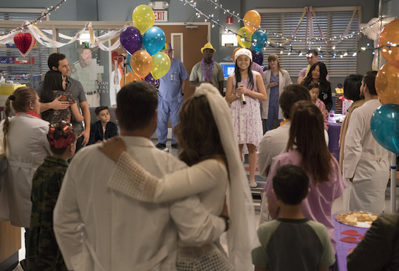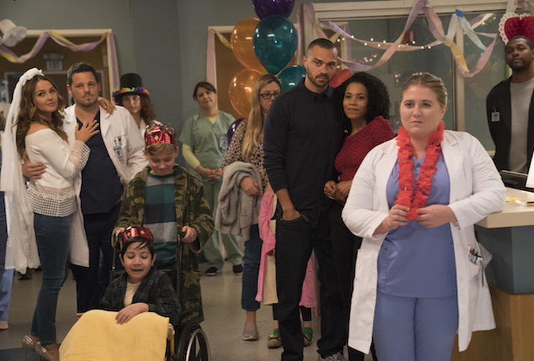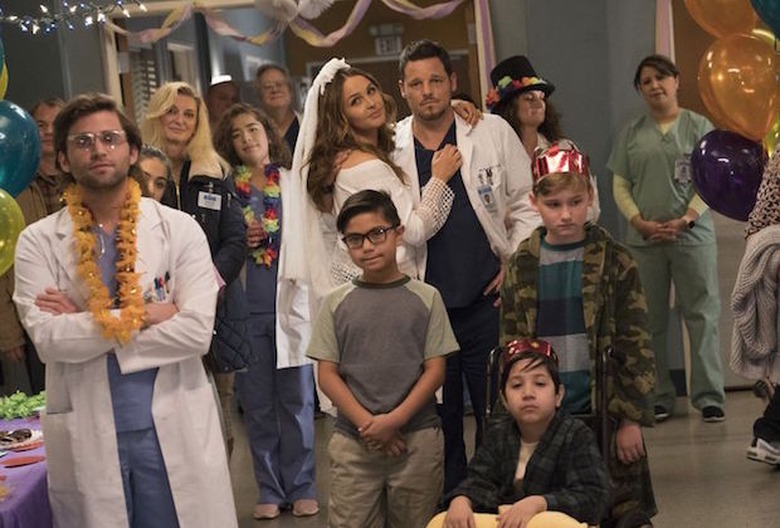 GREY'S ANATOMY – "Hold Back the River" – Amelia, Koracick and DeLuca perform a risky, groundbreaking procedure using ultrasound waves to remove a young patient's brain tumor. Meanwhile, Meredith and Jo work with different polymers to try to salvage their project submission; and Richard's AA sponsor is admitted to Grey Sloan with a DNR, on "Grey's Anatomy," THURSDAY, APRIL 5 (8:00-9:00 p.m. EDT), on The ABC Television Network. (ABC/Kelsey McNeal)