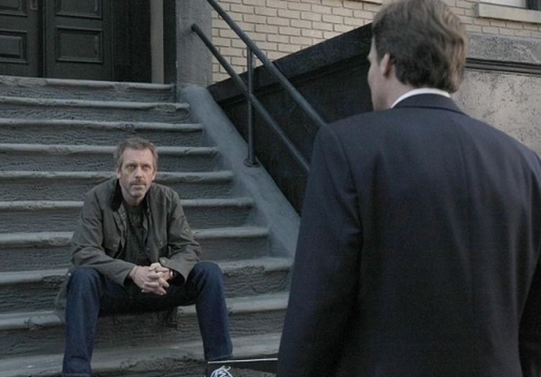 HOUSE: House (Hugh Laurie, R) meets a new patient (guest star James LeGros, L) in the clinic in the two-hour "Swan Song/Everybody Dies" HOUSE series finale event airing Monday, May 21 (8:00-10:00 PM ET/PT) on FOX. ©2012 Fox Broadcasting Co. Cr: Ray Mickshaw/FOX