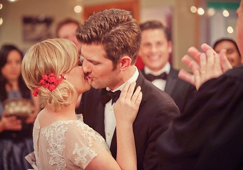 At their wedding, Leslie and Ben touch lips even before Jerry Larry can even finish announcing, "You may now kiss the bride." But that's OK, because we love them and we like them.