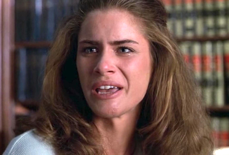 Like many a New York actress, Peet's first primetime gig was Law & Order, where in 1995 she played a Patty Hearst-type who claimed to have been abducted and forced to partake in a deadly crime spree. "I remember feeling a lot of pressure to cry and emote," she tells TVLine, and thus she did (see photo). "I was studying with [Hollywood blacklister] Uta Hagen [who originated the role of Martha in Broadway's Who's Afraid of Virginia Woolf?] at the time, and her telling us that 'nobody wants to cry,'" on camera, "but I didn't care. It's only later in my 40s that I have begun to understand what she was talking about."