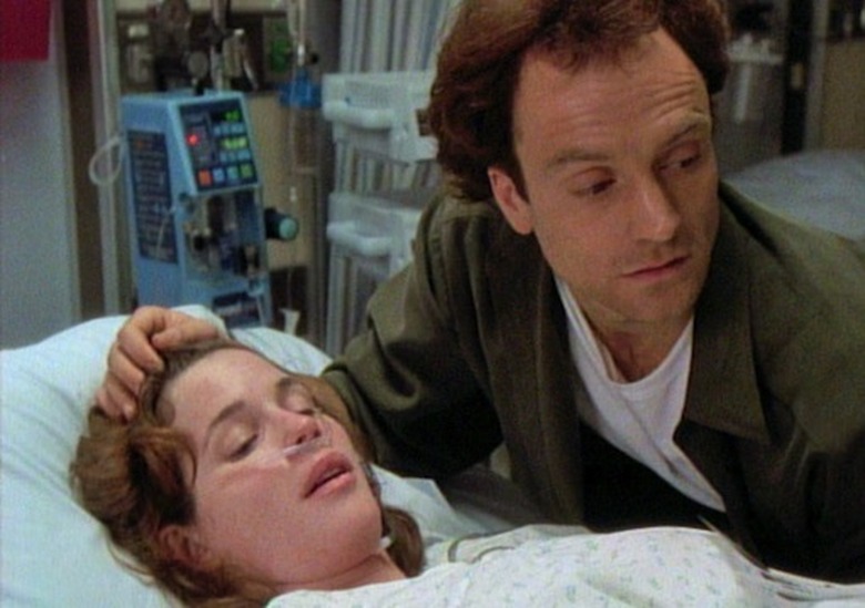 "Love's Labor Lost" was one of the most harrowing episodes of the NBC medical drama's entire 15-season run, and Whitford was part of it, playing the husband of a first-time mother who dies while giving birth on Mark Greene's watch. Executive producer Steven Spielberg was on set during shooting — "How am I supposed to act in front of Steven Spielberg?!" Whitford cries – and the whole endeavor "was really an emotional thing," he says. "The end of that, where they cut out the sound, where Tony Edwards is coming to tell me that my wife has died and I'm holding the baby, it's one of the smartest editing things I've ever seen... We shot a lot of up-close stuff, me falling and stuff, [but] it's just so much more effective when it's silent." A lot of expectant women apparently felt the same way, according to Whitford's sister, who worked at a birthing center at the time. "She said that that episode traumatized a generation of mothers."