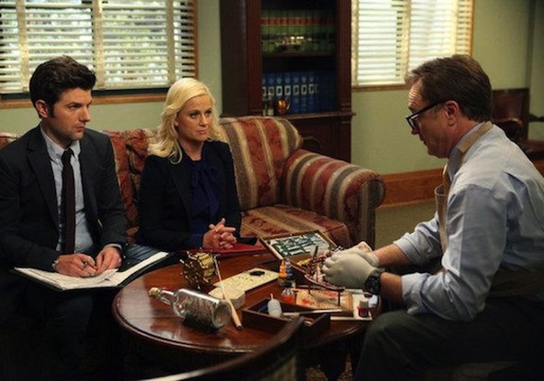 If you think of Leslie Knope & Co. as a bunch of Josh Lyman wannabes, Whitford's Season 4 turn as retiring Councilman Pillner acquires another layer of funny. "I think Amy Poehler's fantastic," Whitford says. "I didn't even think of it, and then I got there and I realized, 'Oh, it's kind of a West Wing joke,'" he says. But the series' behind-the-scenes process took some getting used to. "The main thing I felt was, 'Oh God, they must think I'm terrible.' I got really insecure, just because I wasn't sure. After every take, there's a huddle, kind of an autopsy of the take. I realized, subsequently, that's just the way it is in comedies."