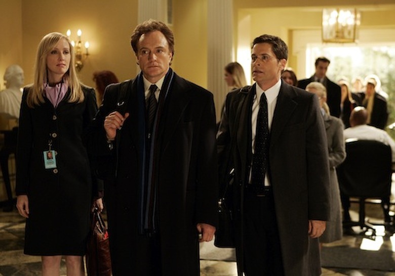 Two more memories Whitford recalls quite clearly: "I remember when we all stopped shooting and watched some stuff when the Iraq war started," he says. Whitford also remembers some fun behind the scenes of the Season 2 episode, "Noel." "Yo-Yo Ma was in it, and it was an amazing day," he says. "One of my favorite memories is Yo-Yo Ma playing cello while Dulé Hill tap-danced."