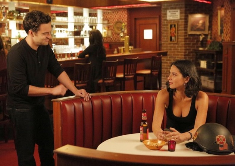 NEW GIRL: Nick (Jake Johnson, L) meets a beautiful and tough customer (guest star Olivia Munn, R) at the bar in the NEW GIRL episode "Bathtub" airing Tuesday, Dec. 4 (9:00-9:30 PM ET/PT) on FOX. ©2012 Fox Broadcasting Co. Cr: Jennifer Clasen/FOX