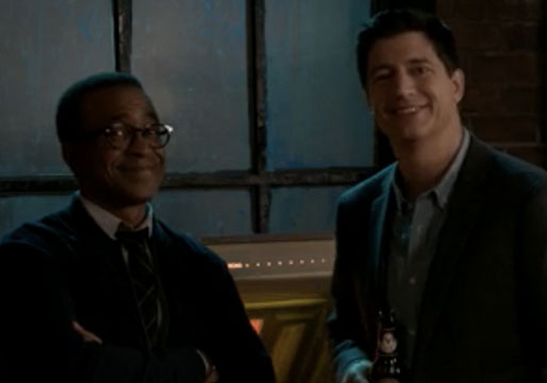Jake (Ken Marino), getting a quick soap opera lesson from Kevin (Tim Meadows) after solving a family crisis