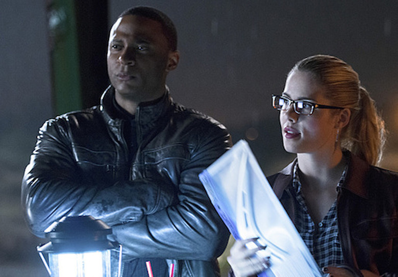 While Cisco oohs and ahhs over Oliver's gizmos, Caitlin (Danielle Panabaker) takes notice of Felicity's (Emily Bett Rickards) favorite "toy."