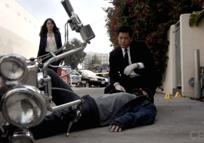 Russell (Ted Danson) sums up a bloody face-print at the scene of the crime