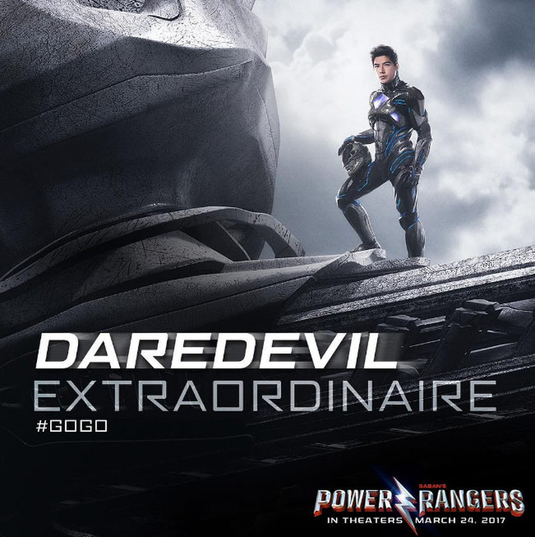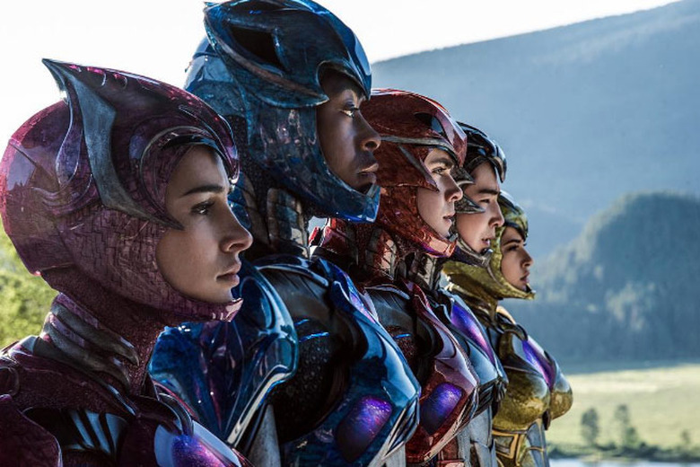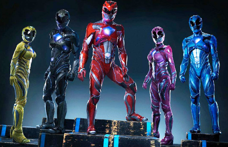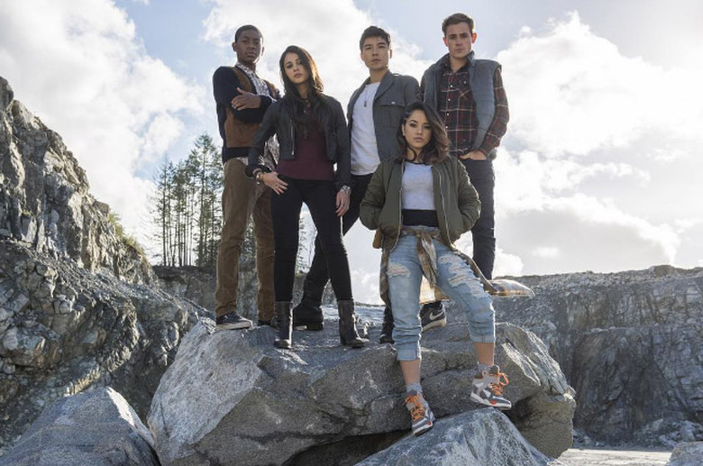 Becky G as Trini (Yellow Ranger), Ludi Lin as Zack (Black), Dacre Montgomery as Jason (Red), Naomi Scott as Kimberly (Pink) and RJ Cyler as Billy (Blue)