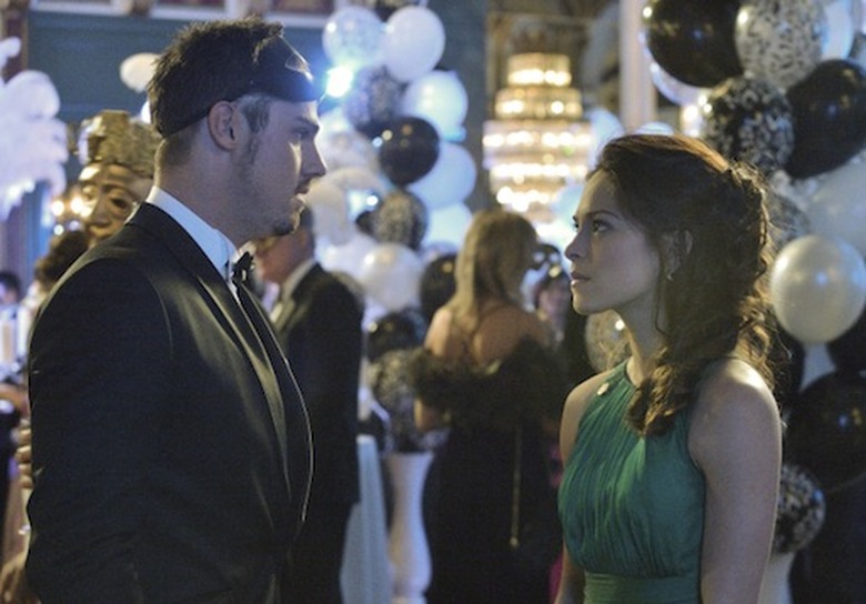THE LATEST | After amusingly discussing with their respective BFFs what their impetuous hook-up did or didn't mean, Vincent and Cat are thrown together undercover as husband and wife, and at a masked ball, no less — just as in the site of one of their most infamous lip-locks. And though Vincent nearly Brittas their full-on reunion by treating Cat like a "damsel in distress," his staging of a romantic rooftop rendezvous seals the deal — they are, always have been, and ostensibly forever will be, in love.
