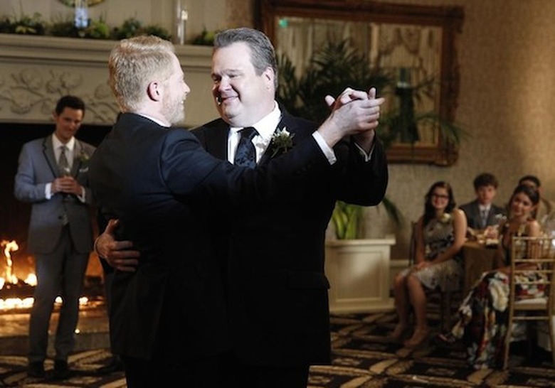 AWW! | Not so fast! Jay is there to save the wedding, which eventually takes place at his country club. Jay walks his son down the aisle — as do Cam's parents — Phil gives a tear-inducing ceremony, Claire delivers a touching speech and the happy couple shares a first dance.