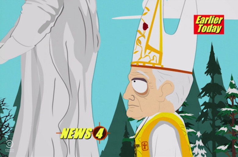 This Season 9 attack on Scientology angered adherents of the controversial religion — including, reportedly, Tom Cruise — by revealing the truth of their beliefs: a bizarre tale involving volcanoes, "thetans," and an evil alien overlord named Xenu. (Really.) The kicker was the onscreen text insisting that "This Is What Scientologists Actually Believe."