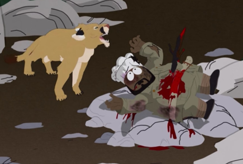 Isaac Hayes, the voice of South Park's Chef, left the show in protest following its jabs at Scientology. Parker and Stone responded by giving his character a Viking funeral. After being brainwashed into joining a "fruity little club" of child molesters, Chef was killed off in gory fashion: impaled, shot, and mauled by both a mountain lion and a grizzly bear. You bastards!
