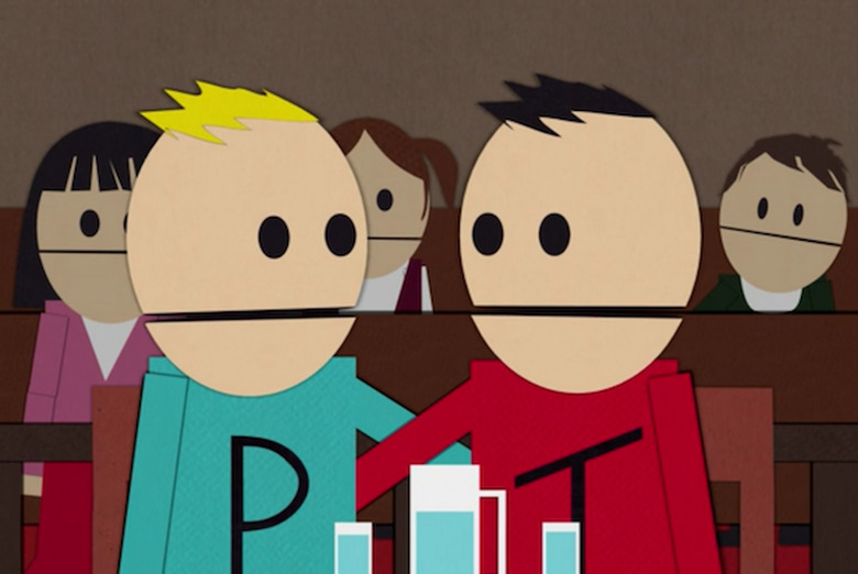 Years before they took Broadway by storm with The Book of Mormon, Parker and Stone spoofed Mormonism in Season 7 with a jaunty retelling of founder John Smith's life story. As the more outlandish details of the Mormon faith were revealed, background singers chimed in with a "Dumb-dumb-dumb-dumb-dumb" chorus. And no, they weren't just harmonizing.