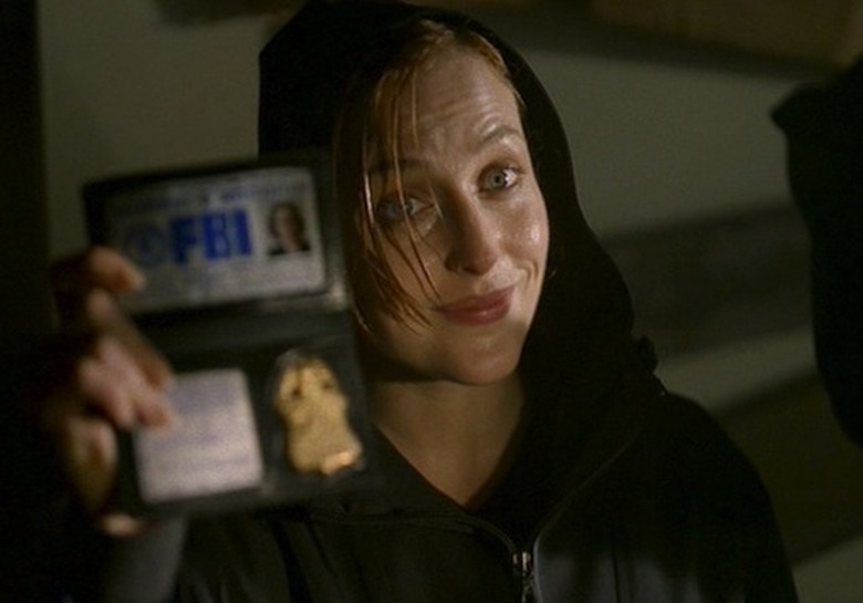 In the Season 6 ep, a drenched Scully helps a woman give birth as a water monster looms overhead and Mulder slowly near-dies out on in the hallway — y'know, just another day for the FBI's Most Unwanted.