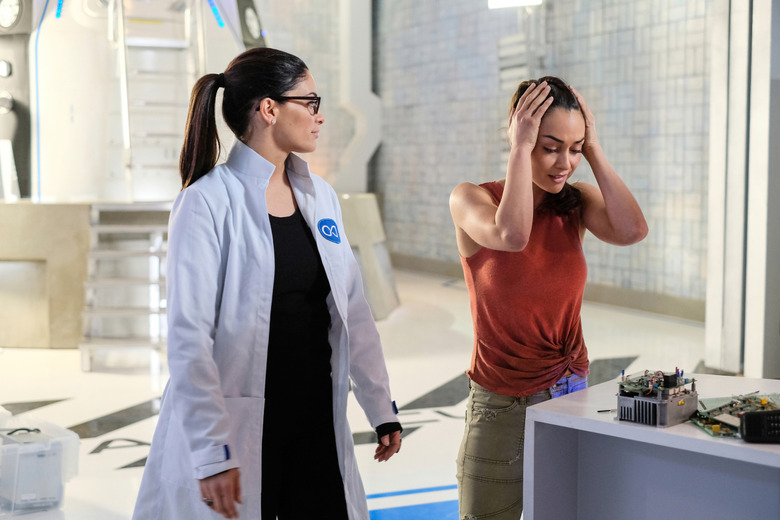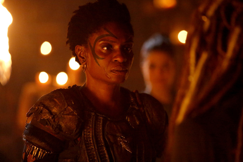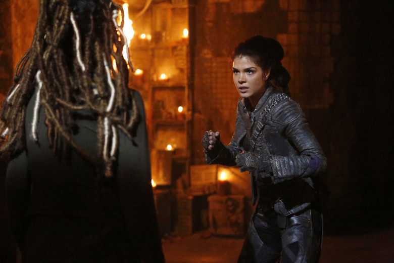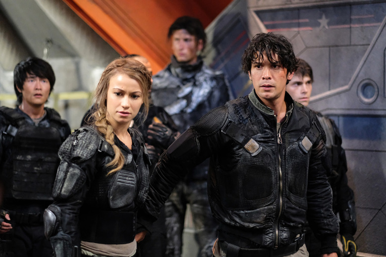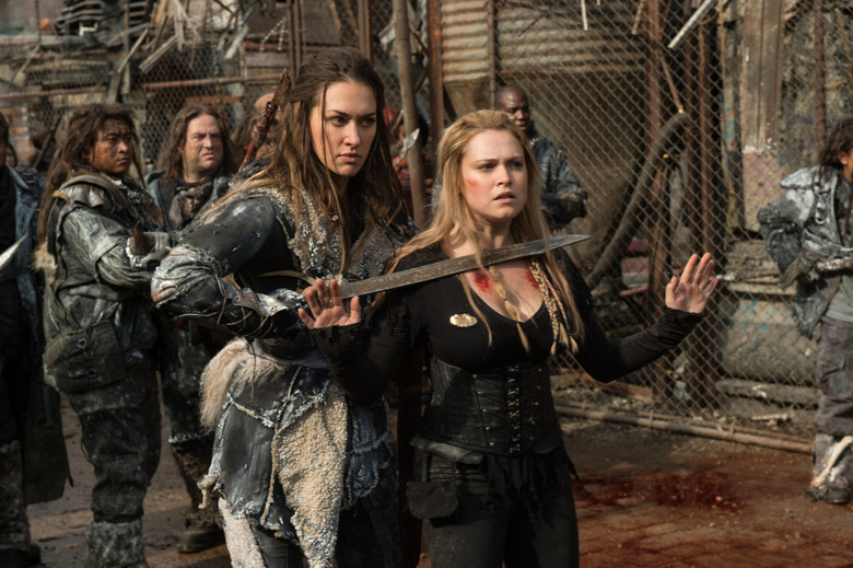 The 100 — "DNR" — Image HU409a_0389 — Pictured (L-R): Erica Cerra as Becca and Lindsey Morgan as Raven — Credit: Robert Falconer/The CW — Ã'© 2017 The CW Network, LLC. All Rights Reserved