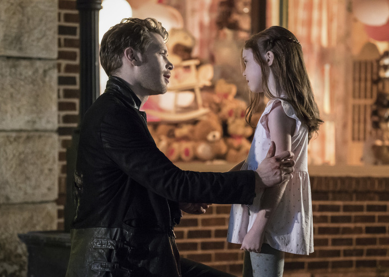 The Originals — "Haunter of Ruins" — Image Number: OR403a_0102.jpg — Pictured (L-R): Joseph Morgan as Klaus and Summer Fontana as Hope — Photo: Bob Mahoney/The CW — Ã'© 2017 The CW Network, LLC. All rights reserved.