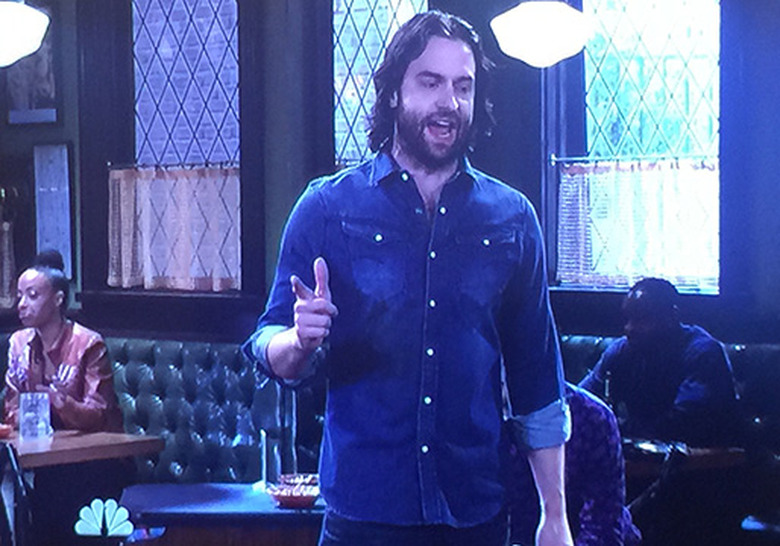 ...and portrayer Chris D'Elia accidentally walks into the camera as the show goes to commercial