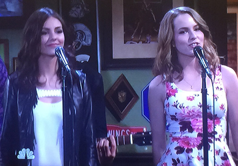 Nickelodeon and Disney Channel unite as former child stars Victoria Justice and series regular Bridgit Mendler close the hour-long episode in song.