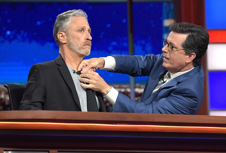 The former Daily Show host hijacks one of Colbert's live Late Show broadcasts to point out that the Fox News anchor loves the Republican candidate for all of the reasons he hates President Obama.
