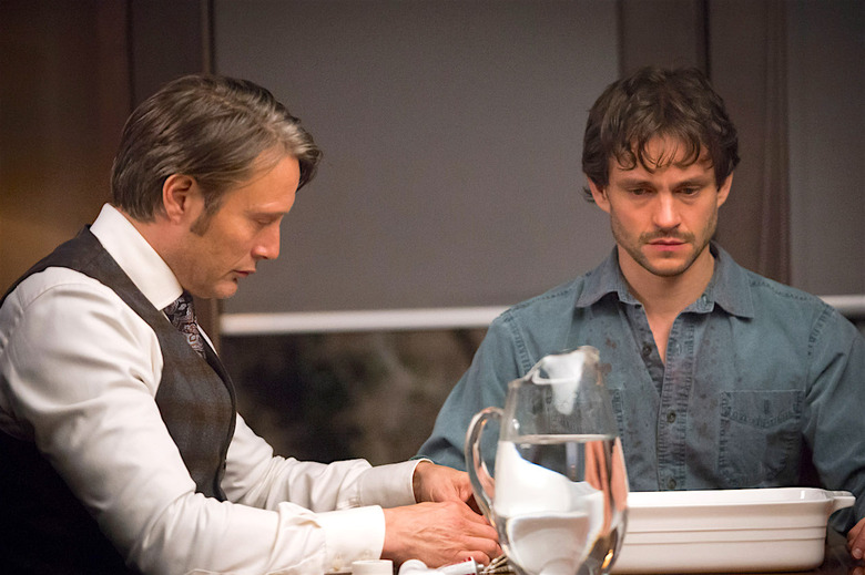 As you might remember, Hannibal ended with the ultimate cliffhanger, as Will and Hannibal literally tumbled off a cliff together in the final moments of the Season 3 finale, seemingly to their certain deaths. It was a perfectly macabre note to end the series on... but not one that left much hope for another season. So first and foremost, since there's no show without them, we're hoping Fuller can come up with a way for Will and Hannibal to survive that fall. (They've both survived a lot of blood loss in the past, so we're not too worried.)