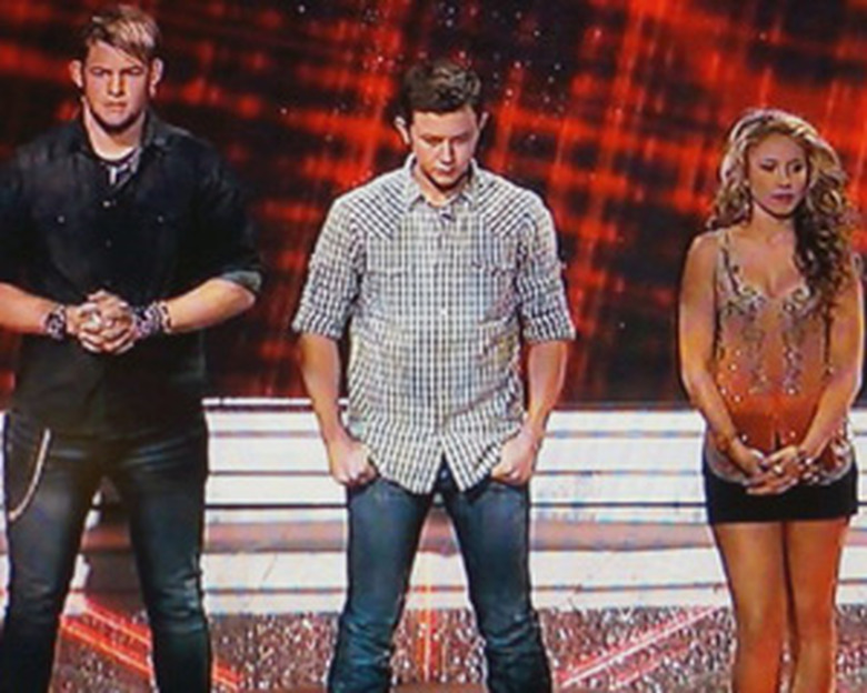 American Idol held its Top 4 results show tonight, and in a most shocking turn of events, the Golden Stools of Advancement replaced the Silver Stools of Potential Doom. Okay, maybe "shocking" isn't the right word for that development, but what's a superlative or two when we're talking about the nation's biggest, most maddening, most buzzed-about television show?