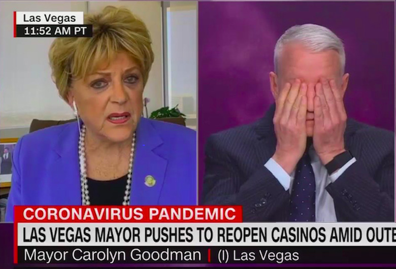 CNN anchor Anderson Cooper was reduced to rubbing his eyes in frustrated disbelief Wednesday when the mayor of Las Vegas repeatedly stated that the city should reopen its casinos, despite evidence that doing so could cause a spike in coronavirus infections.