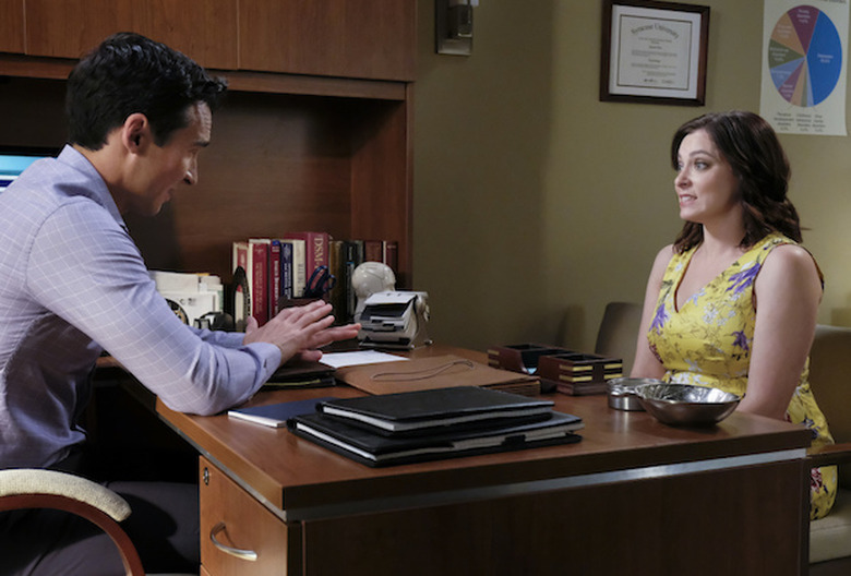 Having survived last week's harrowing suicide attempt, Rebecca was worried she'd be put back on heavy medication, but her new therapist Dr. Shin (The Catch's Jay Hayden) told her he actually thinks she's been misdiagnosed for years, giving Rebecca a burst of hope and optimism. But when Dr. Shin told Rebecca he believes she has borderline personality disorder (BPD), she looked it up online and found a bunch of horror stories about how difficult it can be to treat. She turned to her old therapist Dr. Akopian for a second opinion, but when they went through a checklist of BPD symptoms together and Rebecca had all of them, she finally came to terms with it and agreed to start the long, hard treatment process.