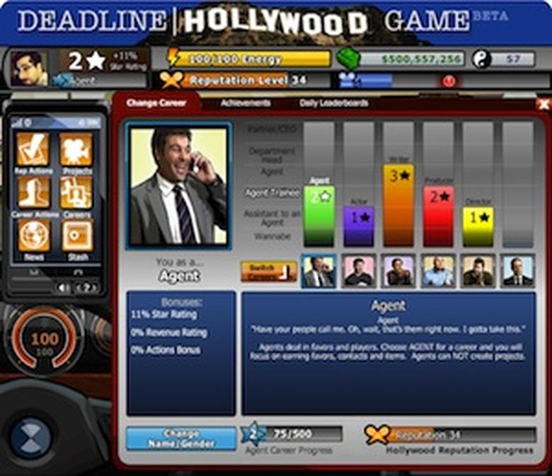 Though specifics on game play and the user interface have not yet been revealed, the 'Deadline Hollywood Game,' says the press release, "employs the same mixture of street smarts and dumb luck to make it in The Industry by allowing players to choose one of several career paths –– actor, screenwriter, producer, director, agent, studio executive –- leading to success or ruin."