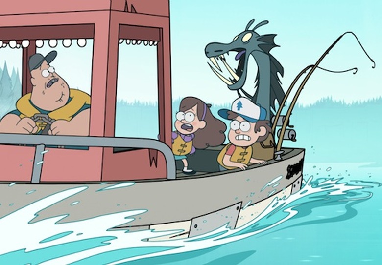 9:30 pm Gravity Falls (Disney) | In the official premiere of this animated series, twins Dipper (voiced by Parenthood's Jason Ritter) and Mabel (30 Rock's Kristen Schaal) set out to prove that a legendary sea monster exists at the bottom of a local lake.