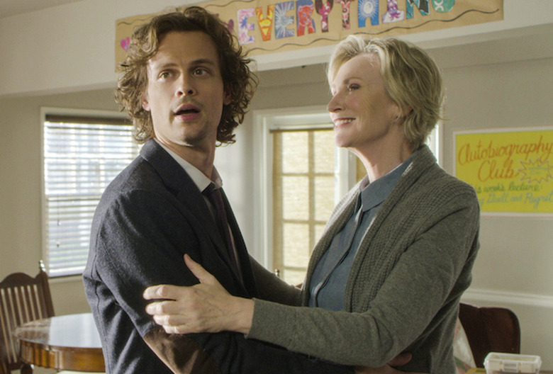 Reid then was summoned to his mother's assisted living facility, where he learned that she had become lucid. As with JJ, Spence's brain knew not to question the science behind Diana's temporary "awakening." And yet his heart did. "You're not a statistic, you're an individual," he argued, nudging her to consider new trials. Waved off my Mom (played by the wonderful Jane Lynch), he grumbled, "I don't understand why you won't do this for me!"