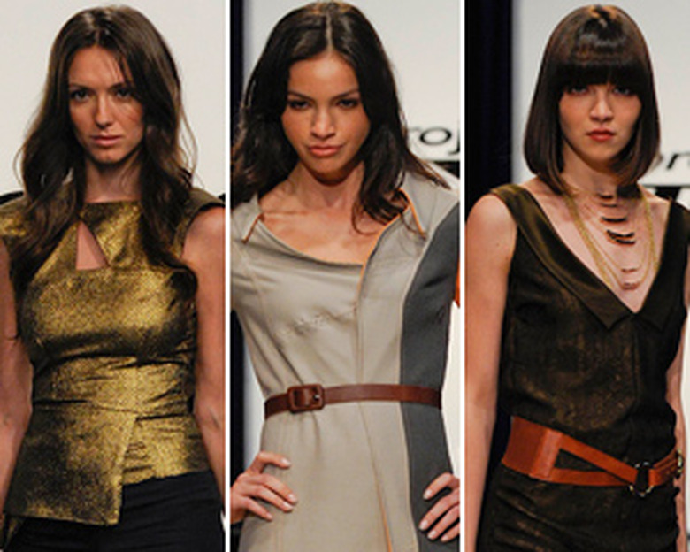 THE REST | In the battle of the same fabric, I liked Becky's dress over Anthony Ryan's dull top, but both of their outfits looked like they had fallen into wet cement. Not sure how Bryce escaped the bottom 3. His outfit looked like a rejected Star Trek uniform, and the hem was horrible. While I wouldn't put them in the Top 3 as is, Laura and Joshua M's outfits intrigued me. I liked Laura's peekaboo skirt, but the drop sleeves had got to go. The color and back of Joshua's dress were very eye-catching (and also revealed that Nina never wears a bra, thanks TMI!), but the front was odd. It looked like the pattern for the dress had been placed on top. And that's it... Oh, wait, Olivier's still here? He's so quiet and unassuming that I keep forgetting he exists — as did Bert, who spoke about Olivier being on the runway when he was sitting right next to him! Both he and his outfit were forgettable this week. Pump up the volume, kid!