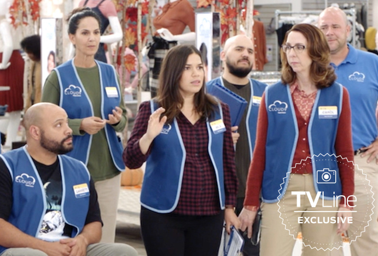 Clean up on Aisle 4! In this exclusive sneak peek at Thursday's Superstore (NBC, 8/7c), Cloud 9 floor supervisor Amy creates quite the commotion when her water breaks on the same day that Dina is set to deliver Glenn and Jerusha's baby.