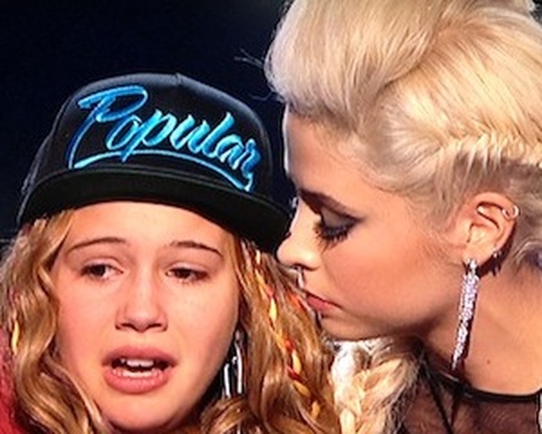 Then it was time to vote, and because deep down, Simon and L.A. Reid must know CeCe doesn't pose a real threat to their front-runners, they chose to oust Beatrice from the competition. So did Demi Lovato, selfishly backing her own horse. Only Britney Spears made the right decision, but it obviously wasn't enough to save Beatrice, who wept and wept and said "I'm sorry" to her little twin sisters. (At least she had CeCe there to hug her and shield her from Mario Lopez's robotic "you were great, sweetie.") (Also: This was not in any way enjoyable holiday viewing.)