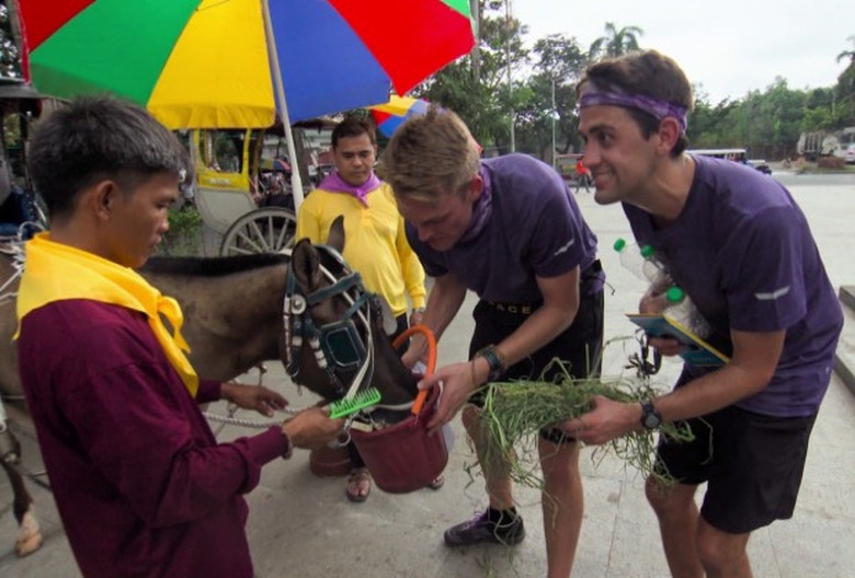 Next, at the central post office, teams must find horse-drawn carriages, then search the grounds for the ingredients to feed the hungry horses. The boyfriends get it done the fastest to take the lead. They rush to the next clue box, which tells them they must identify music they've heard throughout their race, as a band plays live in front of them. Marked cases (with country flags representing the songs) must then be placed in the order they were heard on the race.Chee and Hung arrive, while the other three teams continue to struggle. It's incorrect guess after incorrect guess, and the stress is on for everyone. The boyfriends admit to just guessing at this point. Could this entire season just end right here in a stalemate?Frustrations rise, forcing all of the teams who aren't former NFL football players to work together. Gary and DeAngelo are shocked to see the others working together, but even working together isn't helping anyone. Everyone re-reads the clue and realize the songs need to be placed in the correct order as heard on the race! (D'oh!) The volleyballers finally get the right answer, and before they take off, they clue in Will and James, and Chee and Hung, as promised. The footballers throw in the towel and take the two-hour penalty. PIT STOP | Riley and Maddison clock in first, stamping their ticket to the final, and the boyfriends are right behind them. Sliding into third is Hung and Chee, leaving Gary and DeAngelo in last. The footballers are thus eliminated from the race. How about DeAngelo's last words, huh? (Yikes!) Are you happy with this Final 3? Sound off in the Comments!