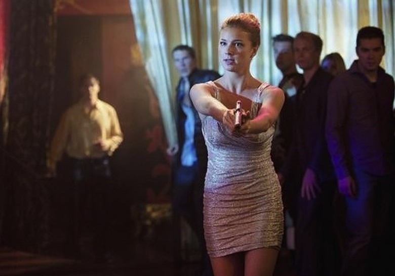 IN WHICH EM SAVES AIDEN'S UNFOCUSED BUTT | Confession time. I find present-day Aiden a little too slick and guarded, so I was happily surprised that he is such a hot mess when he and Emily first cross paths. He's tending bar at a Russian-run, New York nightclub that doubles as a front for a human trafficker named Dmitri. Emily hooches herself up and goes there on her first Takeda mission, where she's supposed to get Dmitri alone and then wait for sensei to come in and do something dramatic (we never find out exactly what that is). In the meantime, though, she runs into a decidedly less polished Ashley who's "auditioning" to be Dmitri's next girl. In the ladies' room, Ashley cries that her MFA in art history "is useless in this town" and talks in a rough British accent that's much more Sporty Spice than Kate Middleton. Em passes her a wad of cash and a phone number, telling her to find out when Dmitri will be there the next day, text Em that information and then never come back. She does. So Emily poses as an aspiring call girl and meets the Russian baddie in Ashley's stead... moments before Aiden unsuccessfully tries to shoot him.